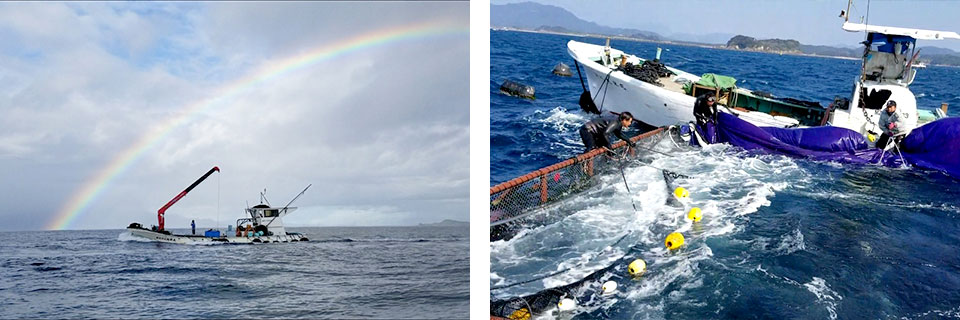 そのためには、時化やどのような状況でもカンパチの命を守るため、我々は結束して沖に向かいます。